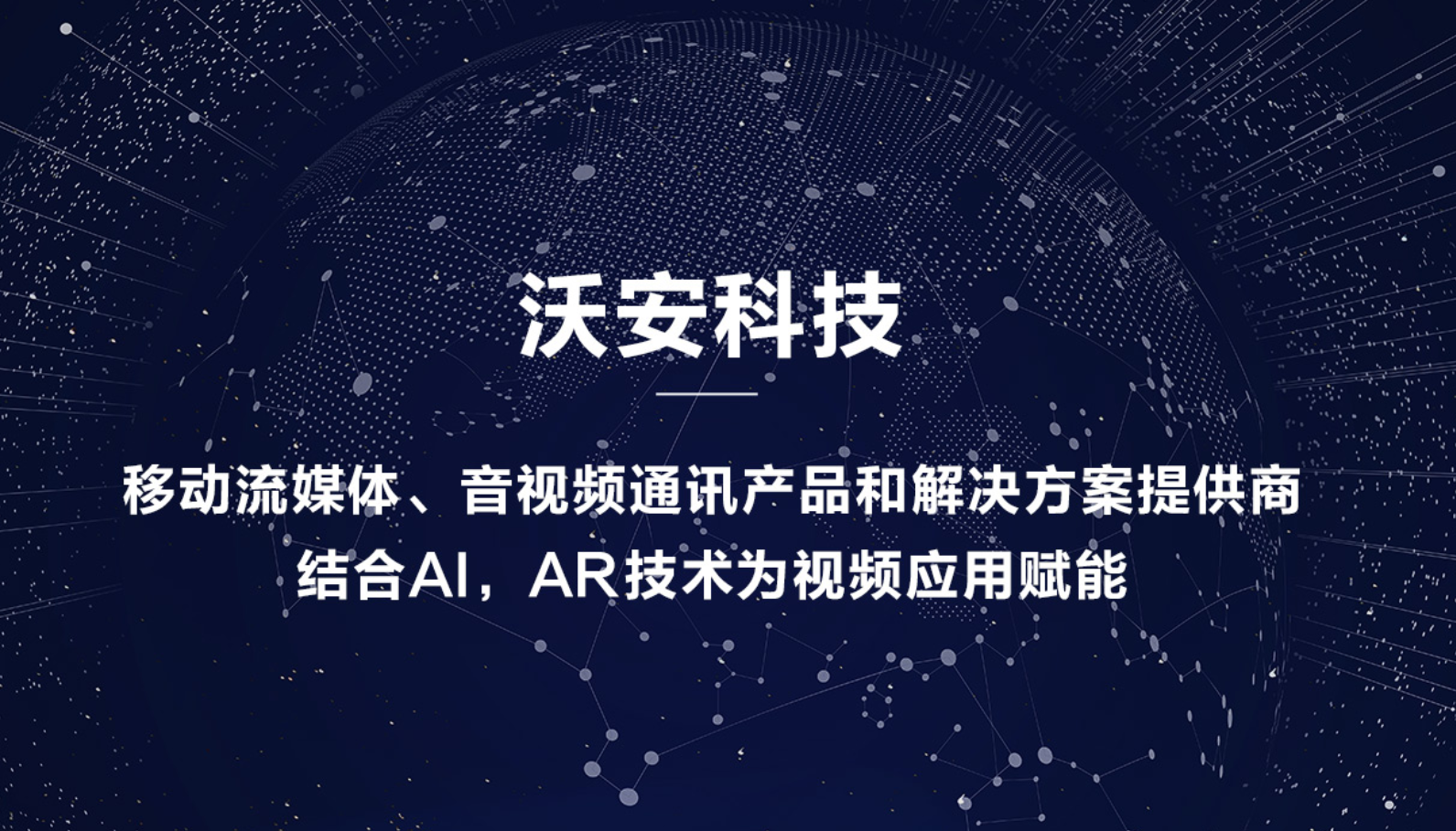 沃安科技致力成為最優秀的移動流媒體、音視頻通訊產品和解決方案提供商,并結合智能識別AI,增強現實AR/虛擬現實VR技術為應用賦能,面向企業級、政府等客戶提供先進、智能、易用的產品和解決方案,以及完備的客戶服務保障。